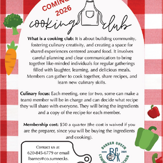 Dine in or carry out. Call or text Jessica (620) 845-0423. We accept cash, check, and card. Open 11:00am-1:00pm. Come eat with us!